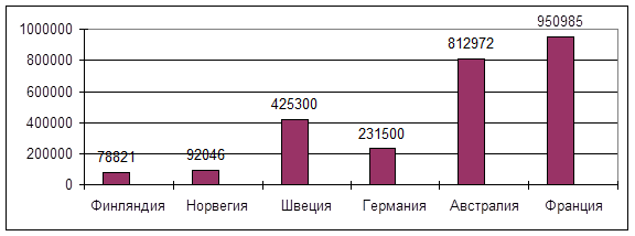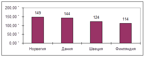 Рис. 8. График стоимости гостиниц в Скандинавских странах\€. [Составлено автором по источнику 15 ]