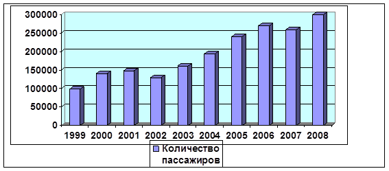 Рис. 11. Динамика количества пассажиров, размещенных во флотелях с 1999 по 2008 гг. [Составлено автором по источнику 7 ]