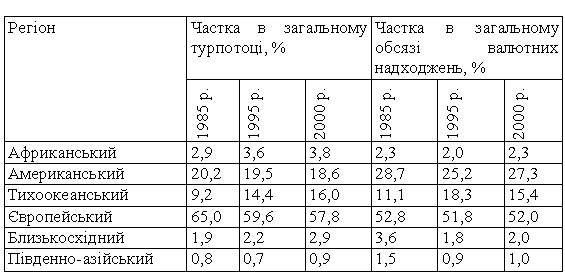 Таблиця 2.2. Регіональна структура туризму (в розрізі регіонів ВТО)