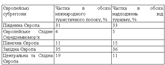 Таблиця 2.4. Субрегіональна структура Європейського туристичного процесу 2008 р.