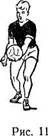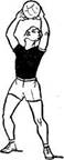 Мяч ложится на первую и вторую фаланги трех средних пальцев, а большой палец и мизинец поддерживают его с обеих сторон. Кисть над плечом (рис. 10).