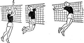 Прыжок выполняется при нападающих ударах и вторых передачах. В волейболе различают два способа прыжка: толчком двумя ногами и толчком одной ногой.
