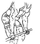 Пальцы рук должны обхватывать гриф, лежащий на стойках, при этом большие пальцы рук располагаются "в замке" вокруг грифа.