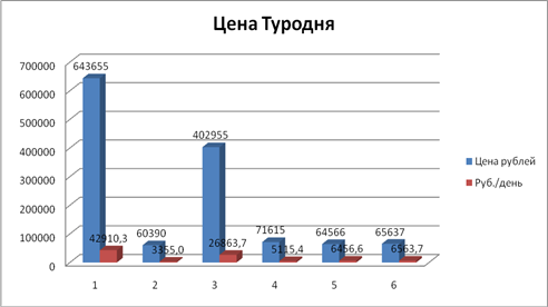 Другим критерием конкурентоспособности турпродукта является цена, что особенно актуально при оценке цена - качество. Более того, низкая цена является психологическим фактором позволяющим привлечь новых клиентов.