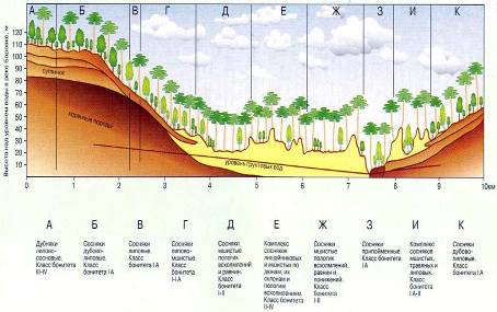 Рисунок 1. - Расположение растительности в зависимости от уровня воды в реке Боровке