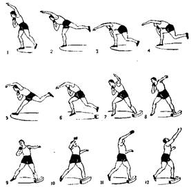 Рис. 1.3 - Техника толкания ядра О’Брайена