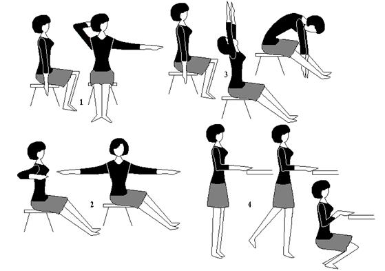 Примерный комплекс упражнений производственной гимнастики для работающих сидя: