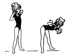 И.п.: ноги на ширине плеч, руки на поясе. 1 – наклонить голову вперёд, 2 – И.п., 3 – наклонить головуназад, 4 – И.п.