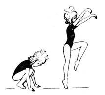 С учетом этого в содержание занятий ритмической гимнастикой для дошкольников следует включать знакомые им упражнения: бег, прыжки, различные виды ходьбы; ритмические движения в сочетании с полуприседаниями, приставными шагами, выразительными движениями рук. Небольшие волнообразные движения туловищем дополняют упражнения, превращая их в своеобразный спортивный танец. Общеразвивающие упражнения в ритмической гимнастике выполняются из разных исходных положений: стоя, сидя на полу, лежа на животе, спине, боку, в различных упорах.