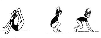 И.п.: упор на коленях. 1 – низко опустить голову, прогнуть спину ввепх, 2 – поднять голову, прогнуть спину вниз.