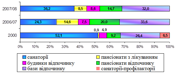 Розподіл санаторно-курортних (оздоровчих) закладів за типами