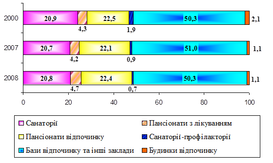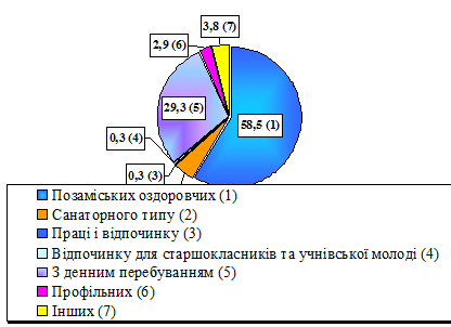 Розподіл ліжкового фонду санаторно-курортних (оздоровчих) закладів за типами