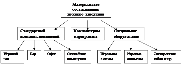 Для успешного функционирования казино необходимо правильно сформировать материальную базу (см. приложение, рис.1). От оснащения казино зависит количество клиентов и качество их обслуживания.