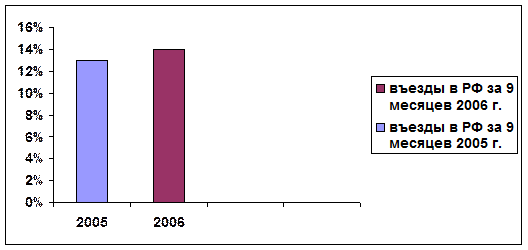 Согласно предварительным данным рост внутреннего туризма составит в 2006 году около 15%, достигнув в абсолютных цифрах 25 млн. поездок. На долю делового туризма за 9 месяцев 2006 года пришлось 14 % въездов, или 2,526 млн. поездок. Заметим, что по сравнению со статистикой 2005 года за 9 месяцев эта цифра увеличилась на 1%. (приложение 2).