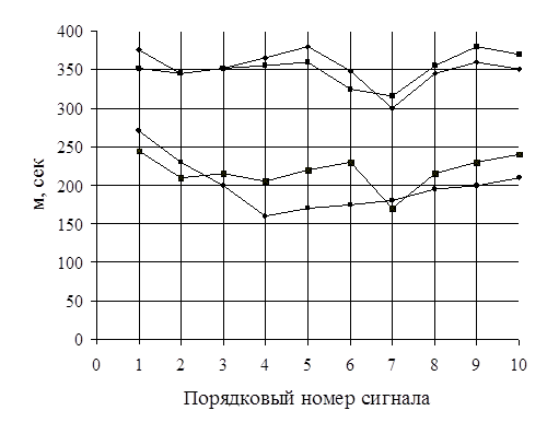 Дистанции, м | Ранговый коэффициент корреляции |