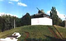 Мирная жизнь горловчан была прервана началом Великой Отечественной войны. Основные предприятия Горловки перестроили свою работу на военный лад. Машиностроительный завод им. Кирова перешел на производство минометов и автоматов; коксохимический наладил изготовление бутылок с зажигательной смесью "КС". Строительные организации и механические мастерские начали выпускать противотанковые "ежи" и сборные железобетонные доты. Как никогда нужен был уголь, и горловские шахтеры горячо подхватили инициативу - работать и за себя, и за товарищей, ушедших на фронт. В конце октября, когда возникла непосредственная угроза Донбассу, оборудование промышленных предприятий было эвакуировано в Кемеровскую и Челябинскую области, в Киргизию и Узбекистан. С 29 октября 1941 г. по 5 сентября 1943 г. Горловка находилась в оккупации итальянскими частями, союзниками фашистской Германии. На фронтах Великой Отечественной войны отличились многие горловчане. 22 из них удостоены звания Героя Советского Союза, 8 воинов стали полными кавалерами орденов Славы - А.Ф. Рулев, Ф.У. Черников, Ф.И. Чичкан, А.М. Оленин, И.А, Остапенко, Г.Е. Бойко, М.М. Холод, Б.А. Котов. Их именами названы улицы нашего современного города. В сквере возле городского автовокзала на высоком холме установлен танк Т-34. Что ж, именно туда мы и направимся. Прошу занять свои места в автобусе.