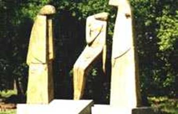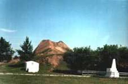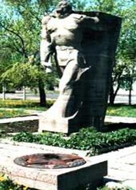 Памятник 75 горнякам шахты им.Ленина, не вернувшихся с полей сражений Великой Отечественной войны, у здания школы N18 на поселке шахты. Автор памятника -скульптор В.В.Уваров