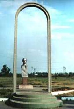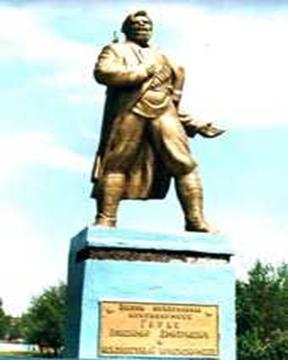 Памятник Герою Советского Союза Г.Е.Бойко на центральной усадьбе КСП "Красный партизан". Автор памятника - скульптор П.И.Антып, архитектор - Н.Бачу.