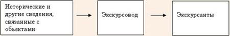 Исторические и другие сведения, связанные с объектами Перед экскурсоводом стоит задача - сообщить определенные знания по теме экскурсантам. Делается это в ходе ознакомления с заранее отобранными памятниками. На этой стадии из трех компонентов в состоянии активности находится только один - экскурсовод как источник устно сообщаемого материала. Экскурсант пассивен. Памятник еще не "заговорил".