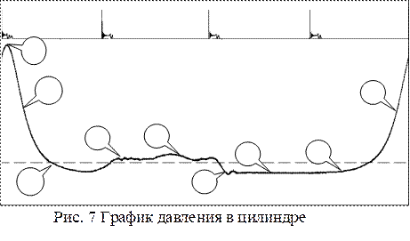 Ниже описаны явления, происходящие в цилиндре. На рис.7 представлен график давления в цилиндре, без воспламенения топлива.