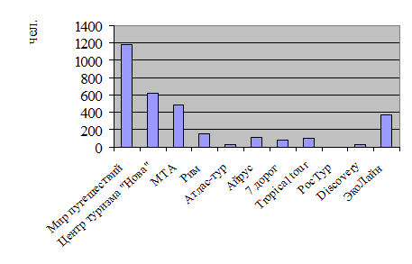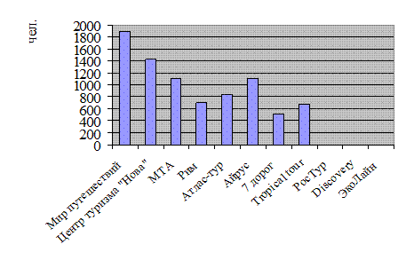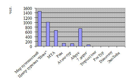 Исследование показало, что все туристические фирмы г.Нефтекамска являются тур-агентами. Фирм-туроператоров, в силу небольших масштабов г.Нефтекамска, в городе нет. Средняя численность персонала туристических фирм г.Нефтекамска составляет – 5 человек.