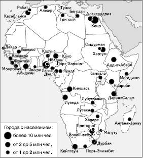 Как и во всем развивающемся мире, «городской взрыв» в Африке характеризуется преимущественным ростом больших городов. Число их увеличилось с 80 в 1960 г. до 170 в 1980 г. и в дальнейшем еще более чем удвоилось. Заметно увеличилось также число городов с населением от 500 тыс. до 1 млн жителей.