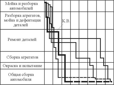 а) последовательное (восстановление и изготовление деталей) – обеспечивается более полная загрузка оборудования, но вызывает длительное нахождение деталей на постах обработки;