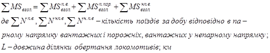 1.1 Загальний пробіг локомотивів у вантажному русі у межах їх обертання визначається за формулою: