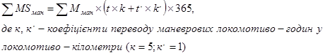 Локомотиво-кілометри маневрової роботи дорівнюють: