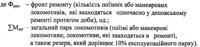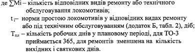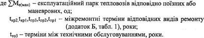Розрахунок програми ремонту поїзних і маневрових тепловозів проводиться згідно з експлуатаційним парком і міжремонтними термінами за форм лами: