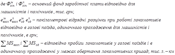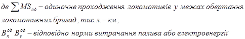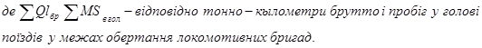 Для локомотивних депо показники ефективності виробництва визначаються у межах обертання локомотивних бригад ( на 1000 ткм брутто).