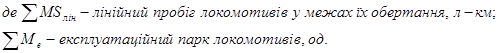 1.7 Експлуатаційний парк локомотивів рахується у межах обертання локомотивів за формулою: