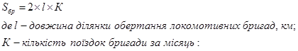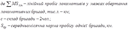 1.4 Лінійний пробіг локомотивів у межах обертання локомотивних бригад розраховується :