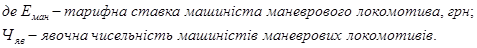 1.8 Локомотиво-години маневрової роботи визначаються згідно з парком маневрових локомотивів (ΣМман), часом роботи локомотивів 1: = 23-5 гол. і часом на його прийом і здачу t=0,5 год.
