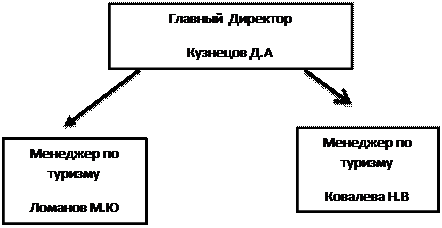 Такая структура управления характерна для малых предприятий, где круг решаемых вопросов незначителен и производственные связи не многочисленны, что и подходит именно для турфирмы «Союз». Эта структура имеет свои минусы и плюсы. Плюсами является то, что это четко выраженная система взаимных связей, за счет чего повышается оперативность управление, соответственно и больше приносимых положительных результатов. Также в этой структуре явно выраженная ответственность, т.е. каждый сотрудник этой фирмы четко знает свои обязанности и права, за что он несет ответственность, что в свою очередь позволяет руководителю фирмы меньше тратить время на решение внутренних проблем и больше посвящать время на изучение внешних факторов внешней среды, маркетингу рынка. Минус в том, что в такой структуре организации трудно приспосабливаться к новым целям и задачам.