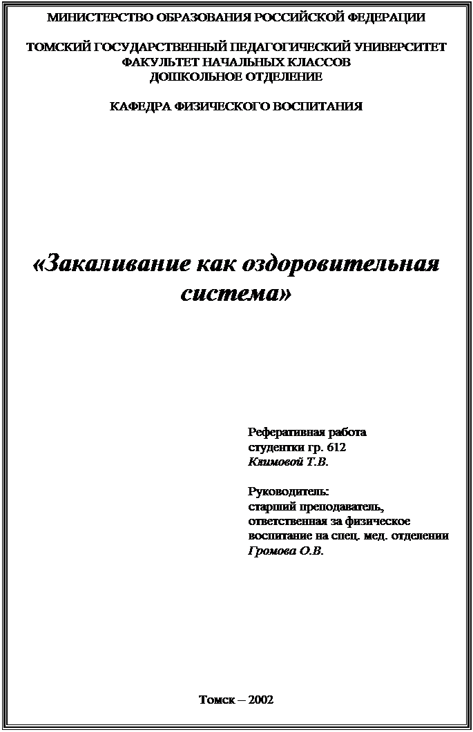 На необходимость закаливания постоянно указывали видные деятели русской науки, медицины и просвещения – Н.И. Пирогов, В.М. Бехтерев, К.Д. Ушинский, Е.А. Покровский, П.Ф. Лесгафт, В.В. Гориневский, И.П. Павлов. Их исследования и научные труды лежат в основе современных представлений о физических воздействиях закаливающих процедур на организм. В сочетании с физическими упражнениями при соблюдении гигиенических условий и рационального режима жизни закаливание составляет единый процесс физического воспитания.