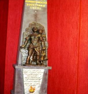 В экспозиции его членский билет. Забытое сейчас памятное место – магазин «Восход» на Базарной площади, снесенное в перестроечные времена. В ночь с 5 на 6 апреля 1919 года здесь собирались повстанцы, а теперь на этом месте находится часовня. Макет памятника героям восстания, и здесь же стенд о легендарном походе отряда красногвардейцев Петра Сухова.