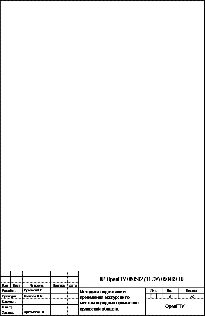 Методика подготовки и проведения экскурсии по местам народных промыслов Орловской области