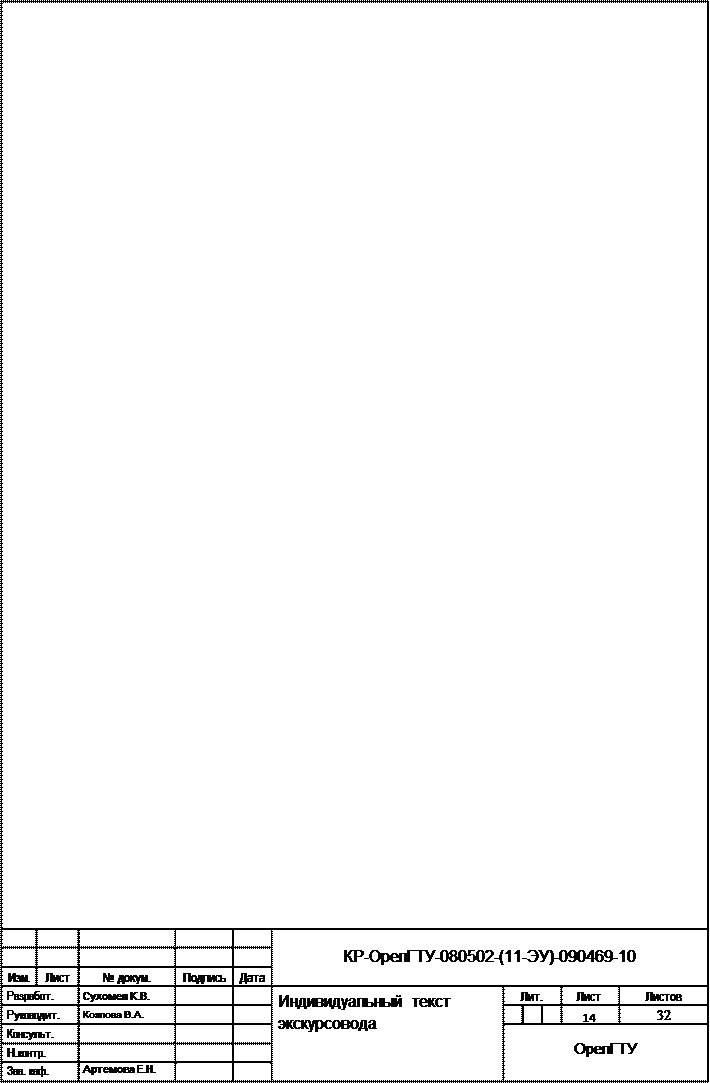 экскурсии и другое), а также учтены особенности данной категории людей, для которых составляется экскурсия, их интересы, способность воспринимать информацию, уровень подготовленности и так далее. В этой главе также описываются методические приемы при проведении экскурсии, особенности изложения экскурсионного текста, определяются требования, предъявляемые к экскурсоводу. − Практический раздел. В нем содержится индивидуальный текст экскурсовода, в котором полностью раскрывается основные свойства, качества экскурсионного объекта, а также дается полное его описание.
