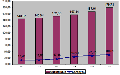Примечание для раздела 1. Некоторые статистические показатели развития Финляндии специально взяты в сравнении с Республикой Беларусь для того, чтобы показать сходства/различия между уровнем развития социально-экономических предпосылок в стране.