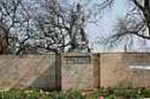 Вход на Воинское мемориальное кладбище. Вход сооружен по проекту скульптора Р.В. Сердюка в 1967 году.