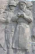 1967 г., по проекту скульптора Р.В. Сердюка сооружена Мемориальная стена с барельефами, посвященными героической борьбе защитников Аджимушкая, славным подвигам воинов десантников.