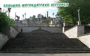 На вершину Митридата в разное время поднимались А. С. Пушкин, а также августейшие особы — Александр I, Николай I и Александр II с супругой Марией Александровной. Сегодня на вершину горы ведет Большая Митридатская лестница, насчитывающая более четырехсот ступеней. Она украшена скульптурами грифонов — мифических существ, с телом льва и головой и крыльями птицы. Грифон — символ Керчи, его изображение есть на гербе города. Построена лестница в 1833–1840 годах по проекту итальянского зодчего А. Дигби. Лестница сильно пострадала во время Крымской войны, а затем и в годы Великой Отечественной. Восстановлена она сотрудниками Крымской научно-реставрационной мастерской в 70-е годы прошлого века. С горы открывается прекрасный вид на город: порты — торговый и рыбный, окрестности, пролив с плывущими по нему судами.
