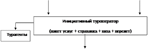 Из схемы работы инициативного туроператора (рис 1.1) видно, что данная туристская фирма выполняет чисто агентские функции: продает сформированные партнером турпакеты, оформляет страхование туристов, визовые документы и бронирование авиабилетов, продает отдельные услуги в составе своих пакетов за комиссионное вознаграждение.