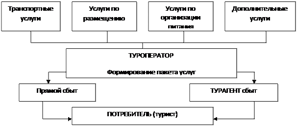 Туроператоры выполняют ведущую роль в туризме, так как именно они (в отличие от турагентов) занимаются формированием основных и дополнительных услуг в единый туристский продукт, который затем реализуют потребителю через агентскую сеть. Схема работы туроператора представлена на рисунке 1.2.