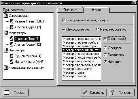 Гибкая система администрирования: назначение прав доступа, как отдельным пользователям, так и группам пользователей, назначение правил контроля менеджеров по продаже, индивидуальные настройки интерфейса каждого пользователя и др.;