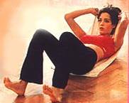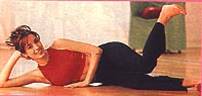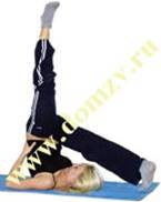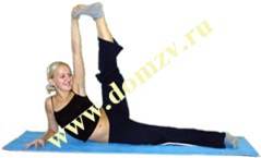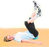 Б. Лежа на спине, поднимайте вытянутую ногу вверх, поддерживая ее руками. Задержитесь в такой позе на несколько секунд, расслабьтесь. Снова поднимите ногу, но теперь подтяните ее как можно ближе к голове. Отдохните и выполните упражнение с другой ноги.