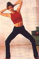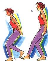 А. Станьте напротив стены, упритесь в нее руками, одну ногу выдвиньте немного вперед. Теперь слегка согните в колене стоящую впереди ногу и поверните таз как можно ближе к стене. Втяните сильно живот, спина должна быть прямой. Сделайте упражнение пять раз, каждый раз меняя опорную ногу.