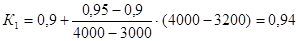 Так как коэффициента коррекции К1 нет в таблице (для нашего случая) его нужно рассчитать по формуле: