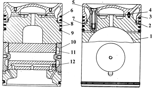 Условия работы поршня тяжёлые, так как он подвергается воздействию как механических нагрузок от давления газов и сил инерции, так и термических нагрузок в следствие необходимости отвода теплоты от головки поршня в охлаждающую среду.